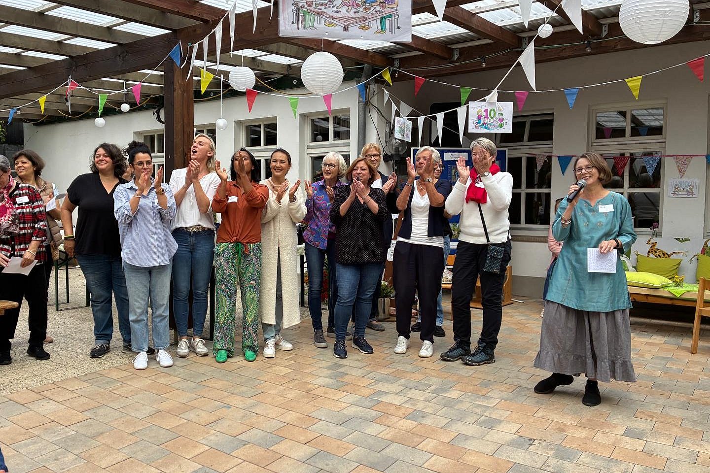 Es kamen viele Gäste, Groß und Klein, Alt und Jung und alle halfen mit, gemeinsam mit dem äußerst engagierten Caféteam, das Fest zu gestalten und zu etwas Besonderem zu machen. So stimmten alle mit ein in den, eigens für das Fest geschrieben, Song vom FranzisKUSS Café, das zehn Jahre alt wird.